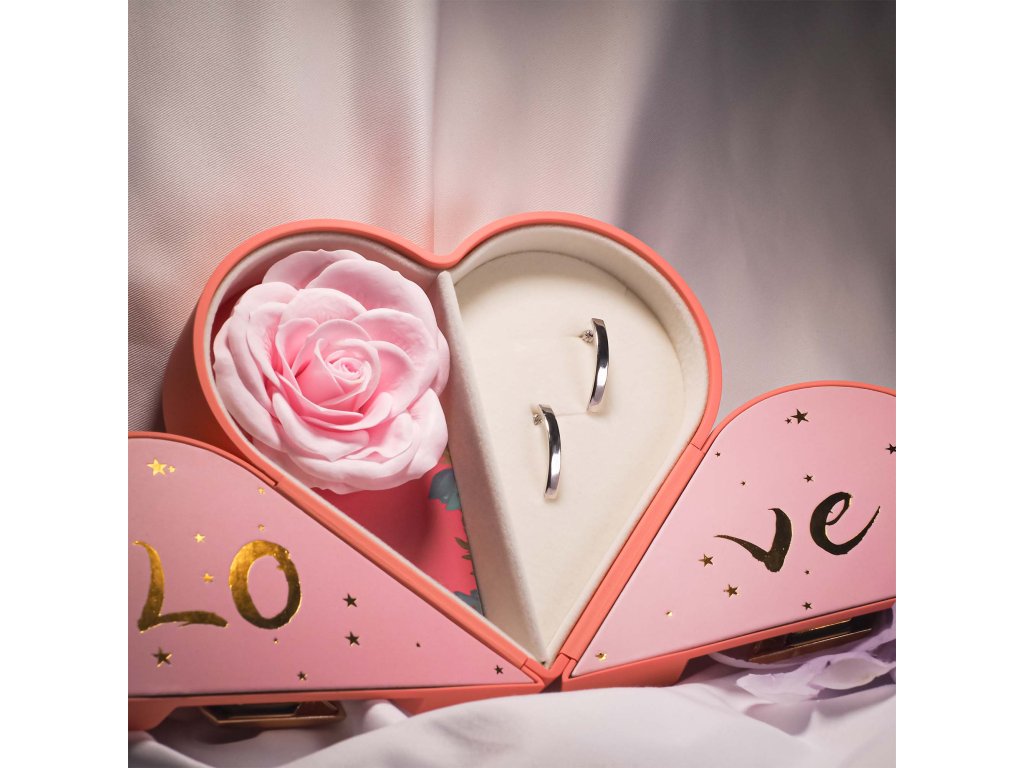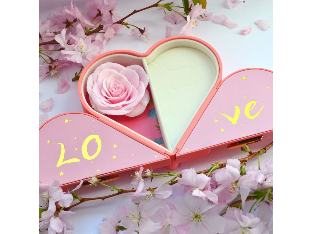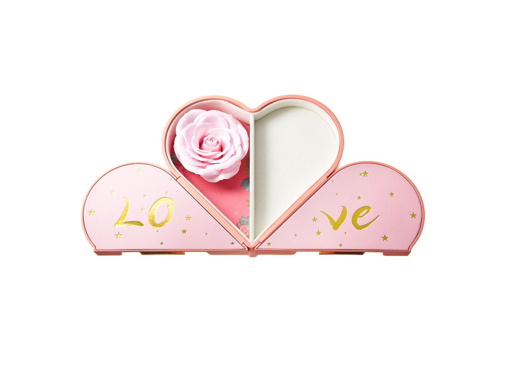 Díky svému designu se stane nejen krásným obalem, ale i vzpomínkovou šperkovnicí. Krabička vypadá romanticky, což ji činí ideální volbou pro darování k příležitostem jako Valentýn, výročí. Krabička obsahuje praktickou přihrádku určenou k uložení šperků – například náhrdelníku, prstýnků nebo náušnic. Uvnitř krabičky se nachází něžná růžička, která dodává celému balení jedinečný a luxusní nádech.