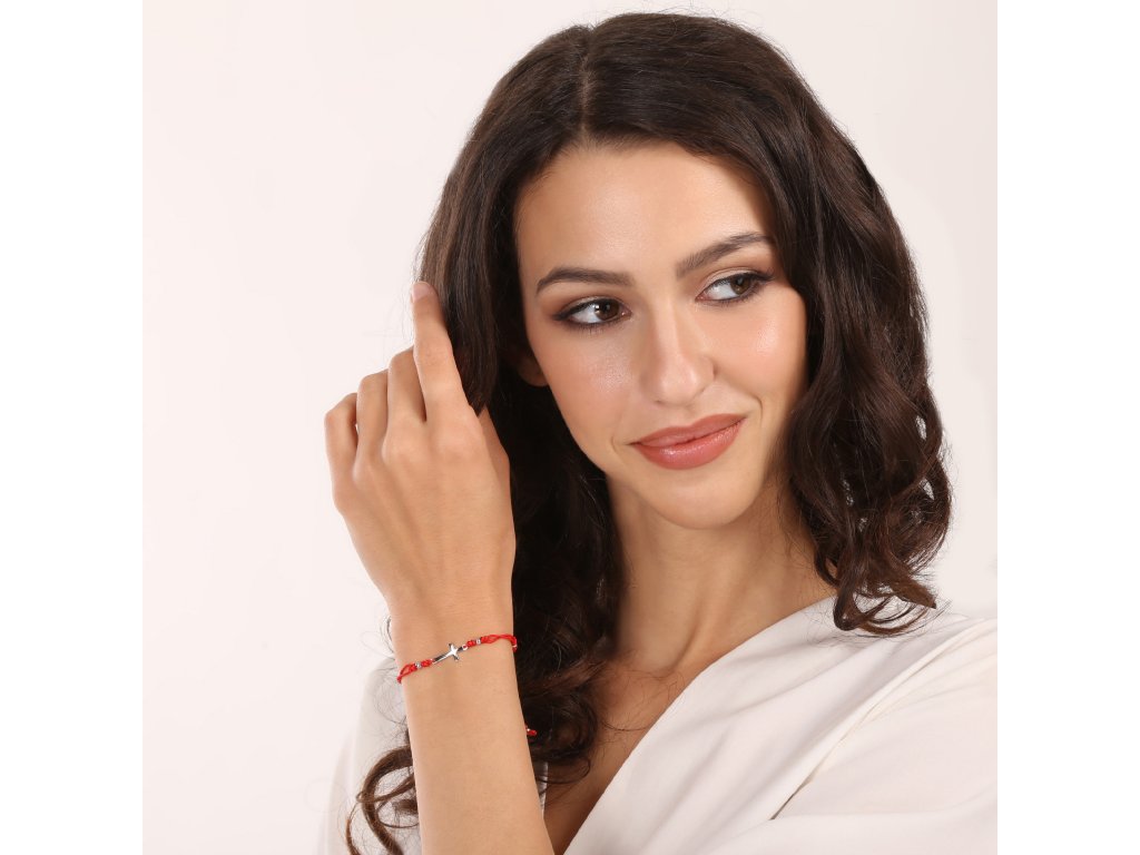 Kabbalah červený náramek stříbrný křížek 13023.3