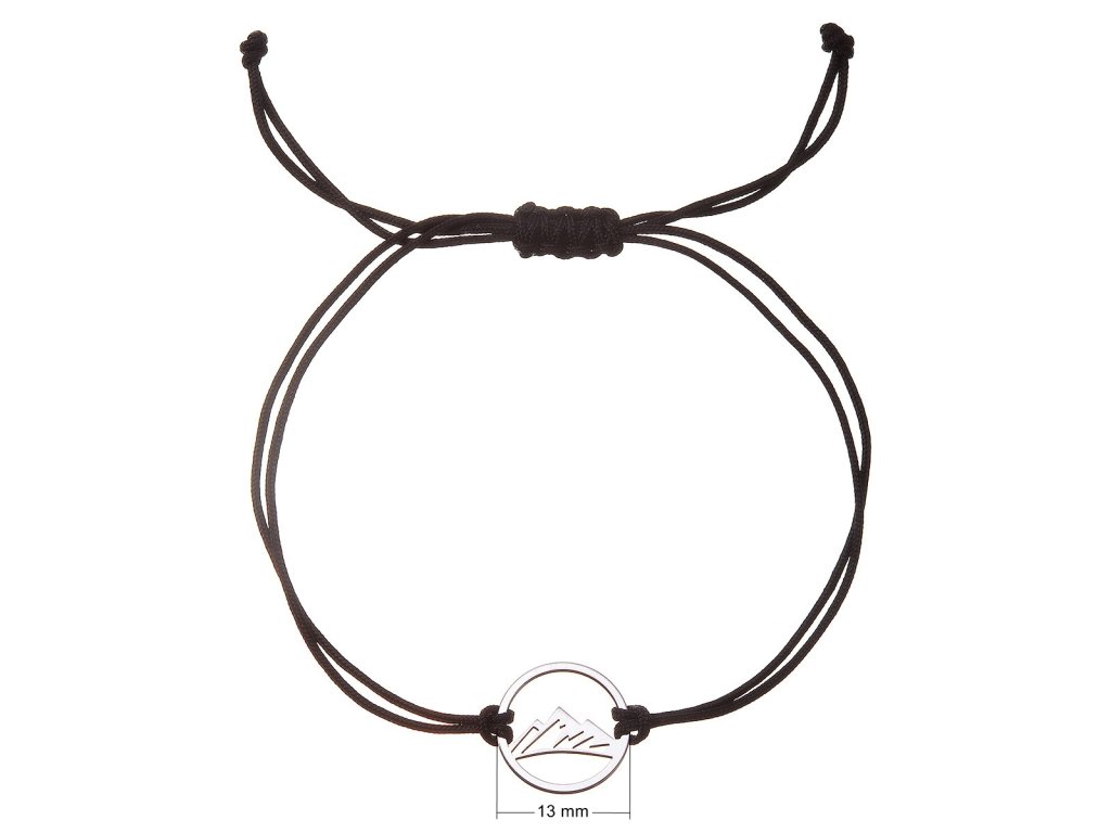 Délka náramku 13077.3 se reguluje posouváním šňůrky v uzlu, maximální délka je 25 cm. Stříbrný kroužek s horami je vyrobený ze stříbra 925/1000 a mohou jej bez problému nosit i alergici, jelikož neobsahuje přídavek niklu.