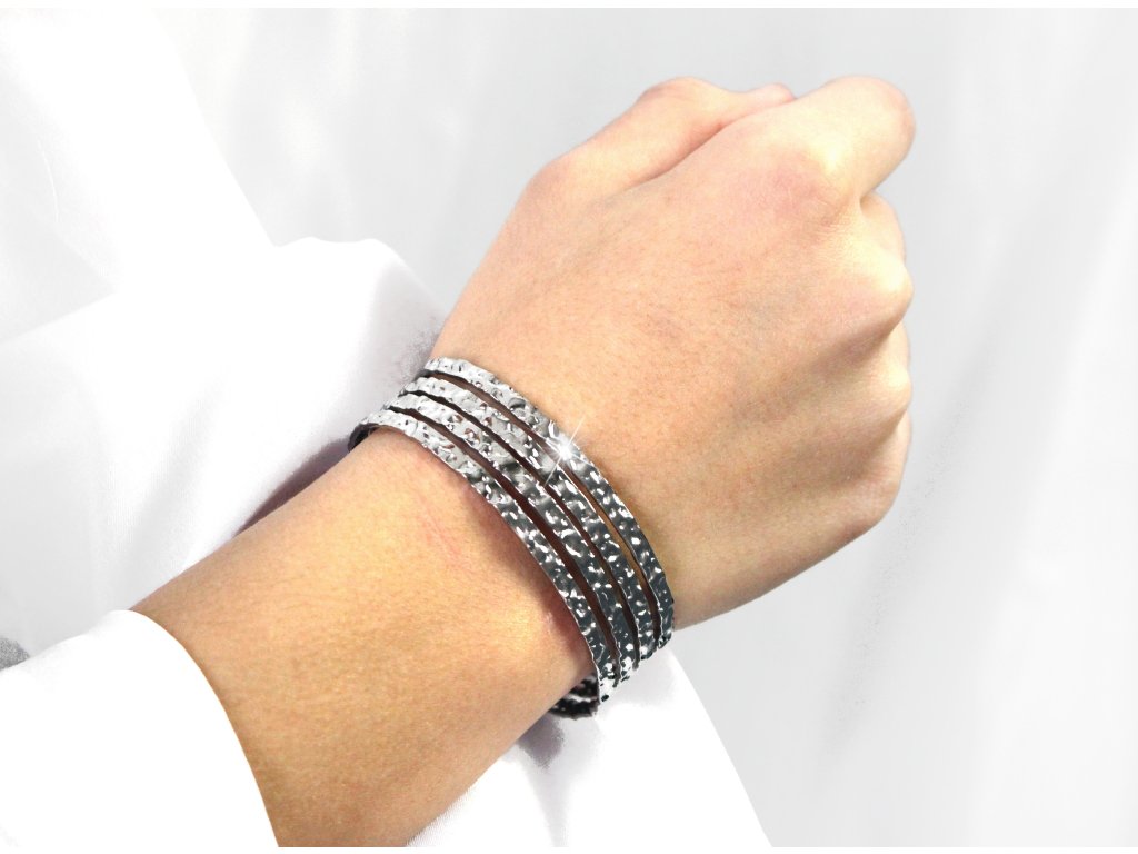 Masivní ocelový náramek čtyři řady pomačkaný bez krystalů