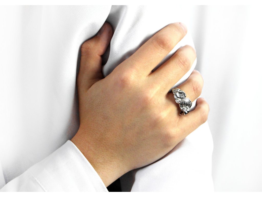 Masivní ocelový prsten se zmačkaným efektem bez krystalů