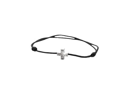 Šňůrkový náramek se stříbrným přívěskem kříže a krystaly Swarovski Crystal (Stříbro 925/1000)