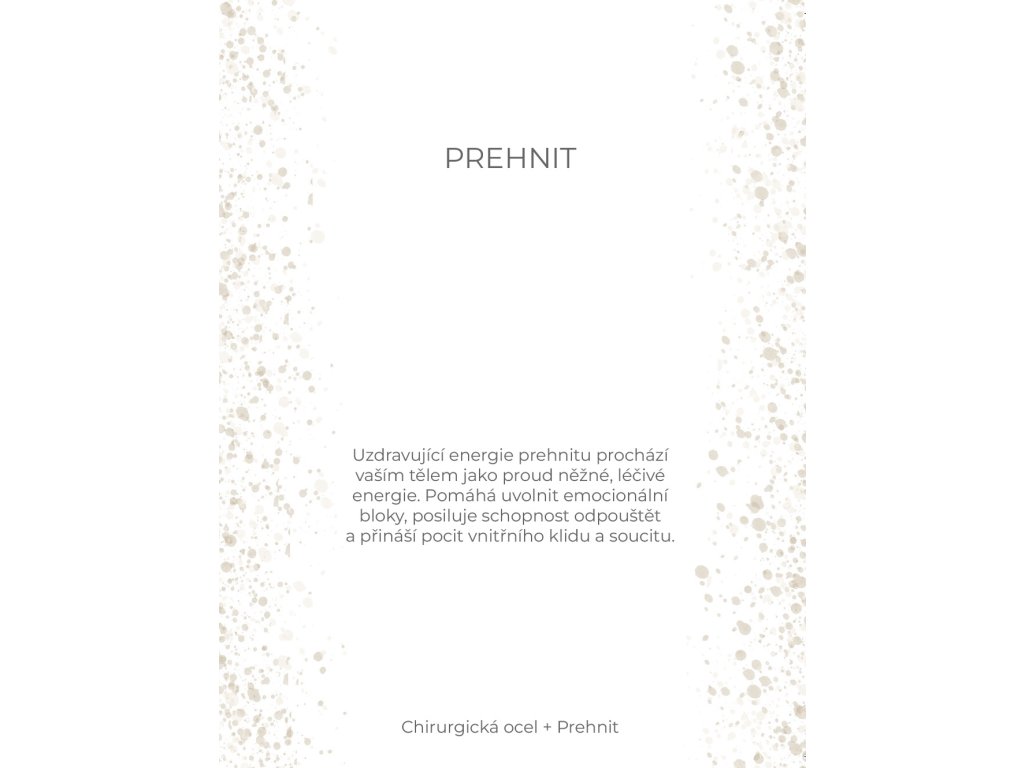 Jeho mléčně bílá barva dodává šperku jemnost a sofistikovanost. Prehnit přináší pocit vnitřního klidu a soucitu, což z něj činí ideální doplněk pro každodenní nošení.
