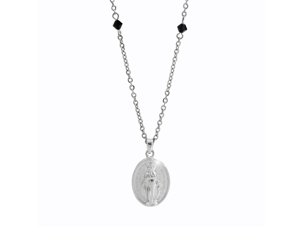 Náhrdelník z bižuterní slitiny madona s korálky Swarovski Jet na řetízku