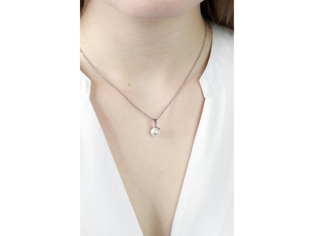 Náhrdelník z bižuterní slitiny samostatná perla 8mm White