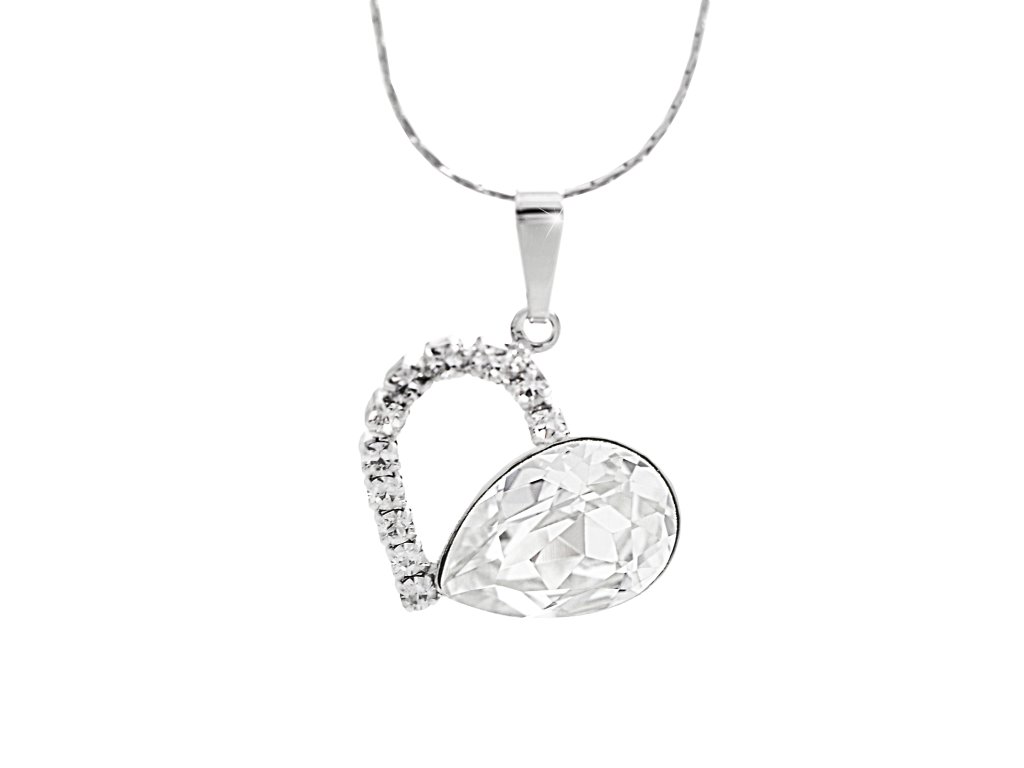 Náhrdelník z bižuterní slitiny štrasové srdce s velkým krystalem Swarovski Crystal