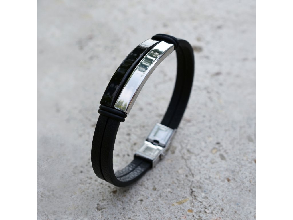 Elegantní pánský náramek pro moderní muže! Podtrhněte svůj vzhled originálním pánským náramkem. Náramek je vyrobený z černé koženky s ocelovou ozdobou stříbročernou, která upoutá přiměřenou pozornost.Zapínání je ocelové. Délka náramku je 21 cm. Šperk neobsahuje nikl, a tak se nemusíte obávat žádné alergické reakce.