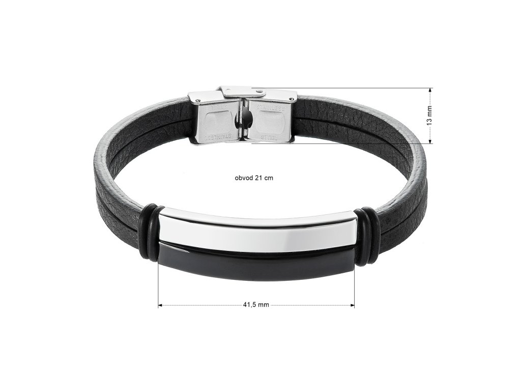 Parametry pánského náramku černá koženka s ocelovou ozdobou 43028.3 černý
