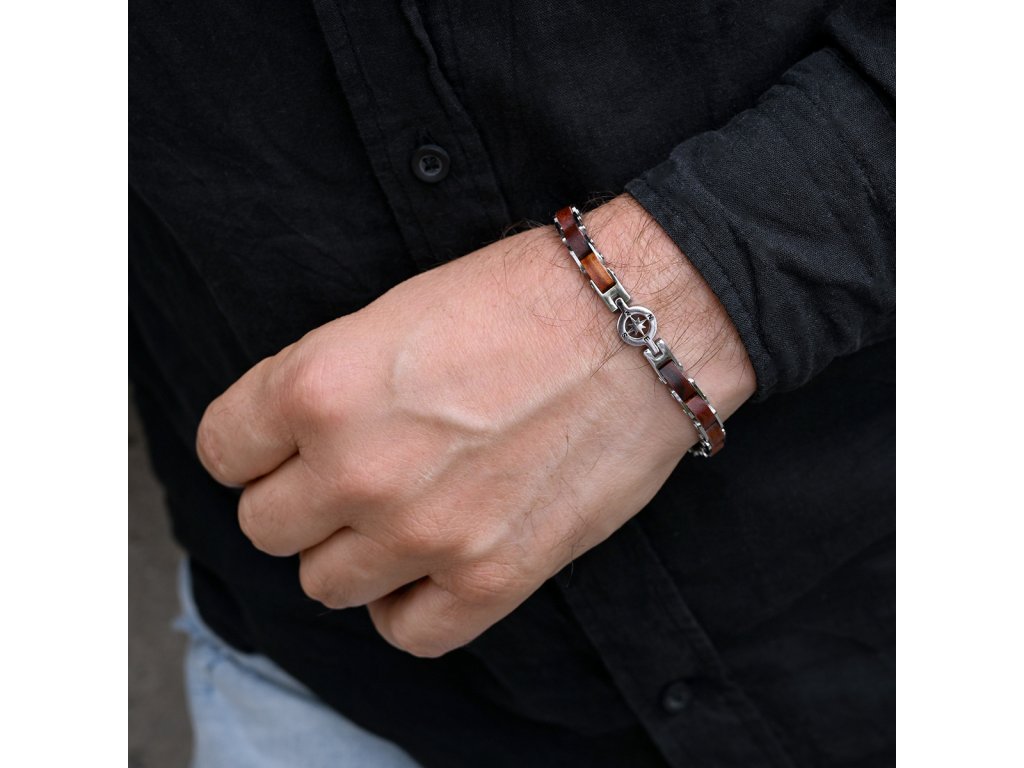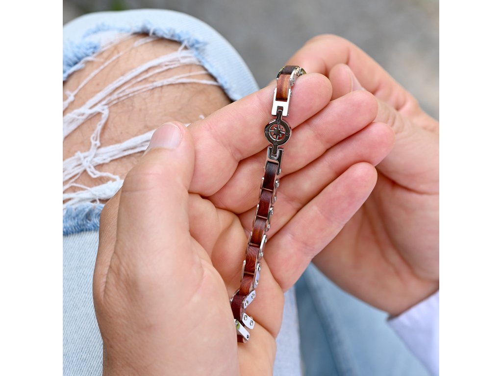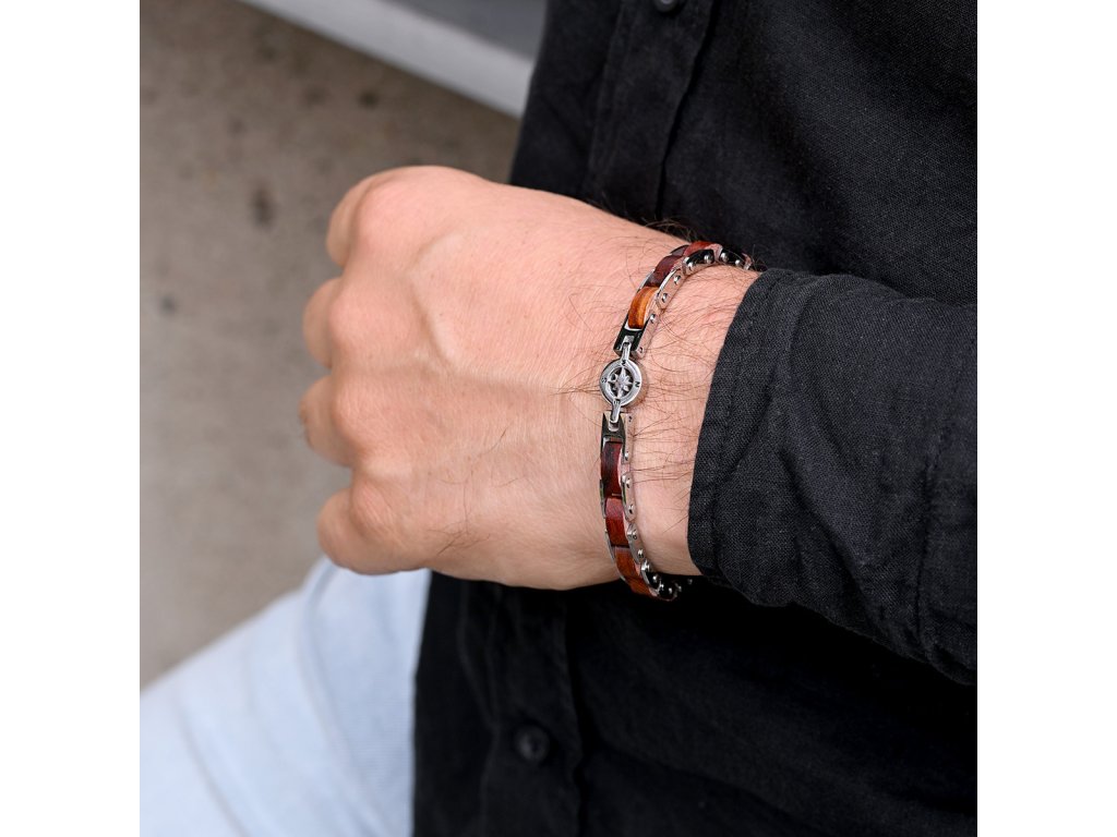 Náramek pánský kombinace dřeva a oceli 43096.3