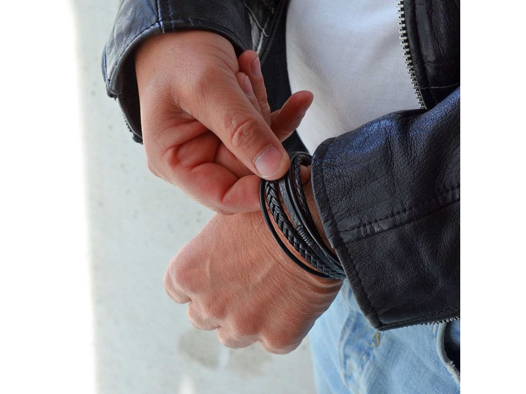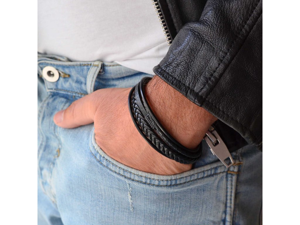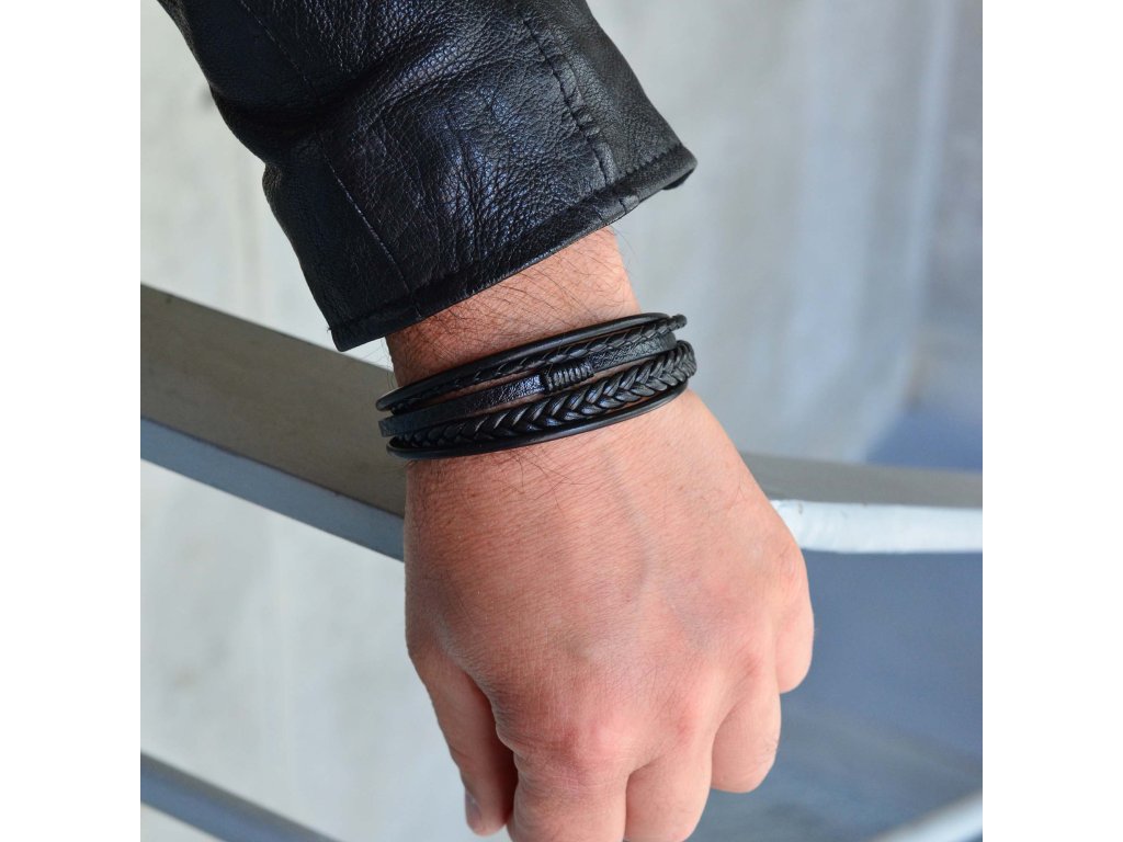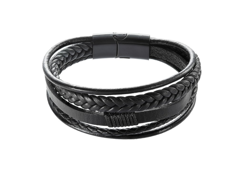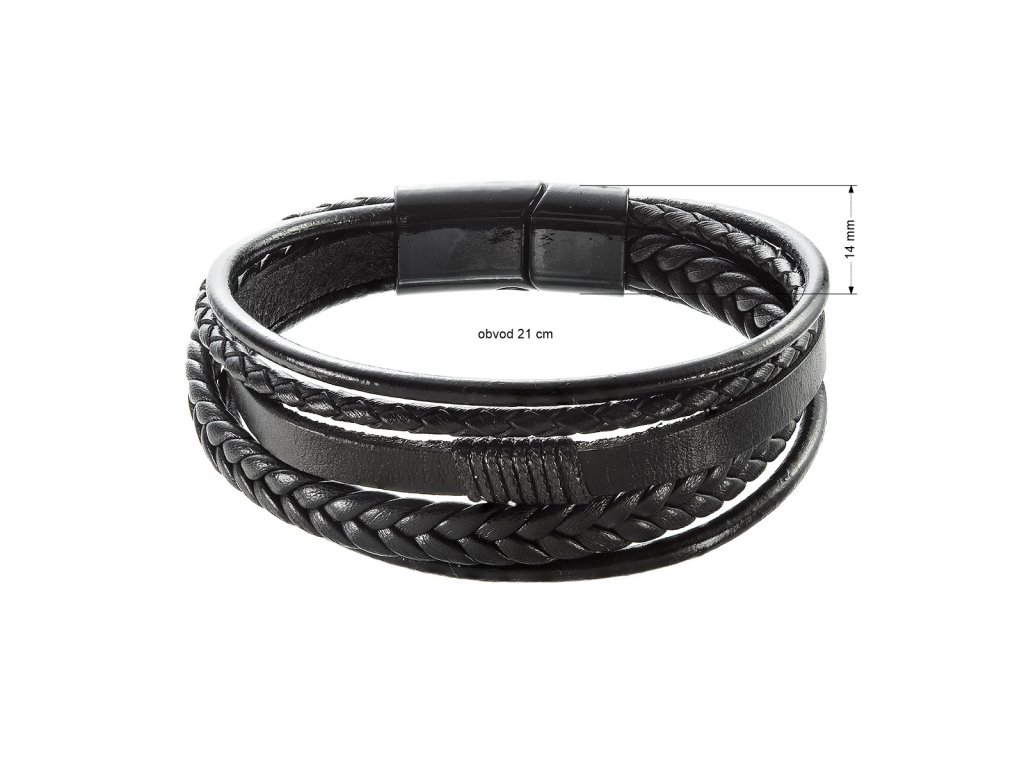 Náramek pánský s koženkovými pásky a sponou na magnet 43023.3 černý