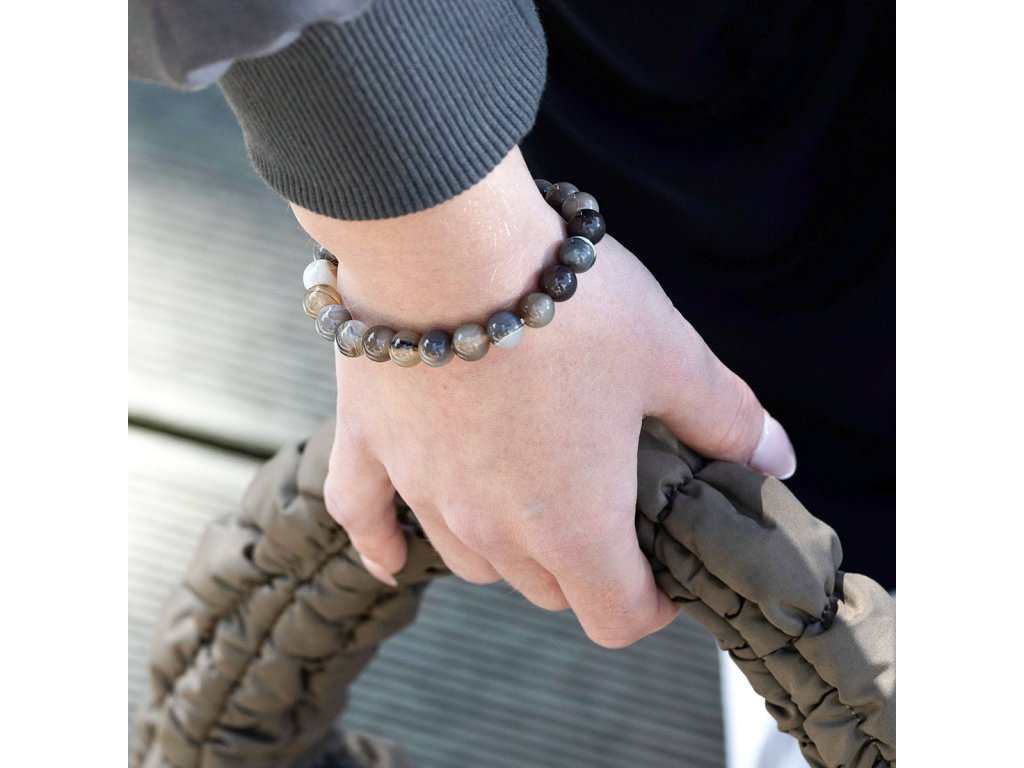 Díky elastickému provedení se náramek snadno přizpůsobí většině velikostí zápěstí a je pohodlný pro každodenní nošení. Přírodní vzhled náramku se skvěle kombinuje s různými styly oblečení a hodí se pro ženy i muže – jako šperk i jako osobní talisman pro stabilitu a vnitřní klid.