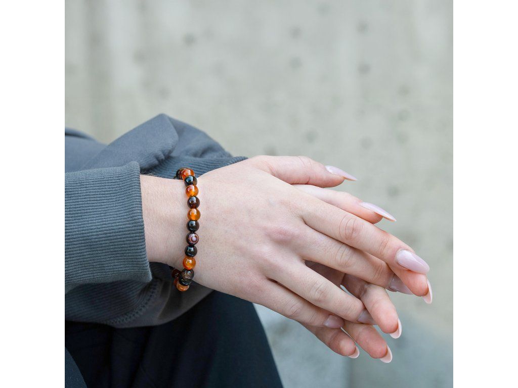 Elegantní náramek z pravého bronzitu okouzlí svými teplými, zemskými tóny – od zlatavé bronzové přes hnědou až po temně čokoládové odstíny. Hladké korálky o průměru 8 mm vytvářejí harmonický celek, který působí pevně, klidně a zároveň výjimečně luxusně. Každý korálek má svou jedinečnou kresbu a strukturu, což dodává náramku osobitý charakter.