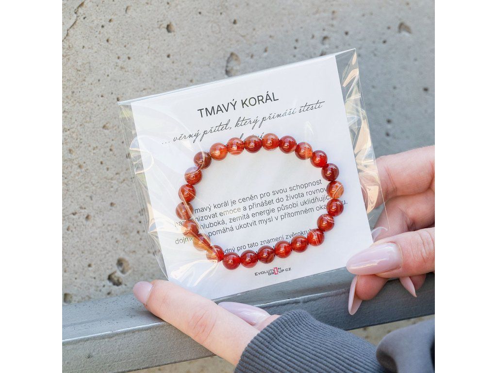 Náramek je navlečený na kartičce s popisem vlastností korálu a uložený v ochranném sáčku. Ke každému šperku obdržíte také dárkovou taštičku – ideální jako dárek pro sebe nebo někoho blízkého.