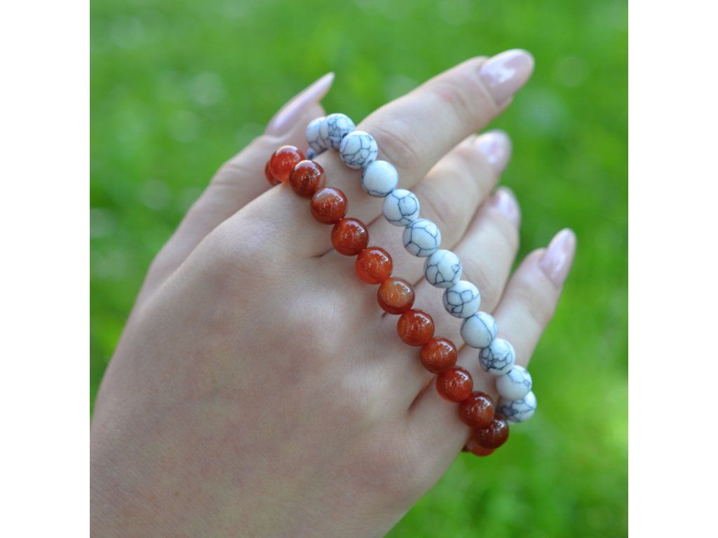 Náramek s minerálními kameny korál tmavý 43056.3