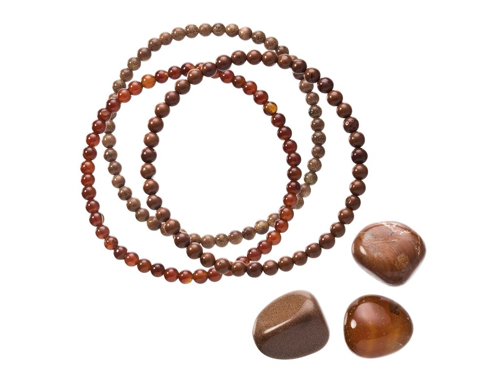 Světle hnědé až načervenalé barvy s luxusními zlatavými odlesky jsou náramky z přírodních minerálních kamenů. Navíc blahodárně působí na duševní a fyzickou rovnováhu. Každý, ze tří náramků, je vyroben z kamenů, které mají různé vlastnosti a energie. Popis každého druhu si můžete přečíst níže. Tento jemný náramek se skládá z kulatých kamínků, které se krásně barevně i energicky doplňují. Kamínky jsou navlečené na elastickém vláknu, což je vhodné pro různé velikosti zápěstí. Náramky jsou skvělým dárkem pro každého, kdo má rád přírodní krásu a zajímá se o alternativní způsoby péče o duševní a fyzickou pohodu.Navíc k náramku, máte od nás tři oblé kameny stejného materiálu jako jsou náramky, na povalování si v ruce pro načerpání energie.