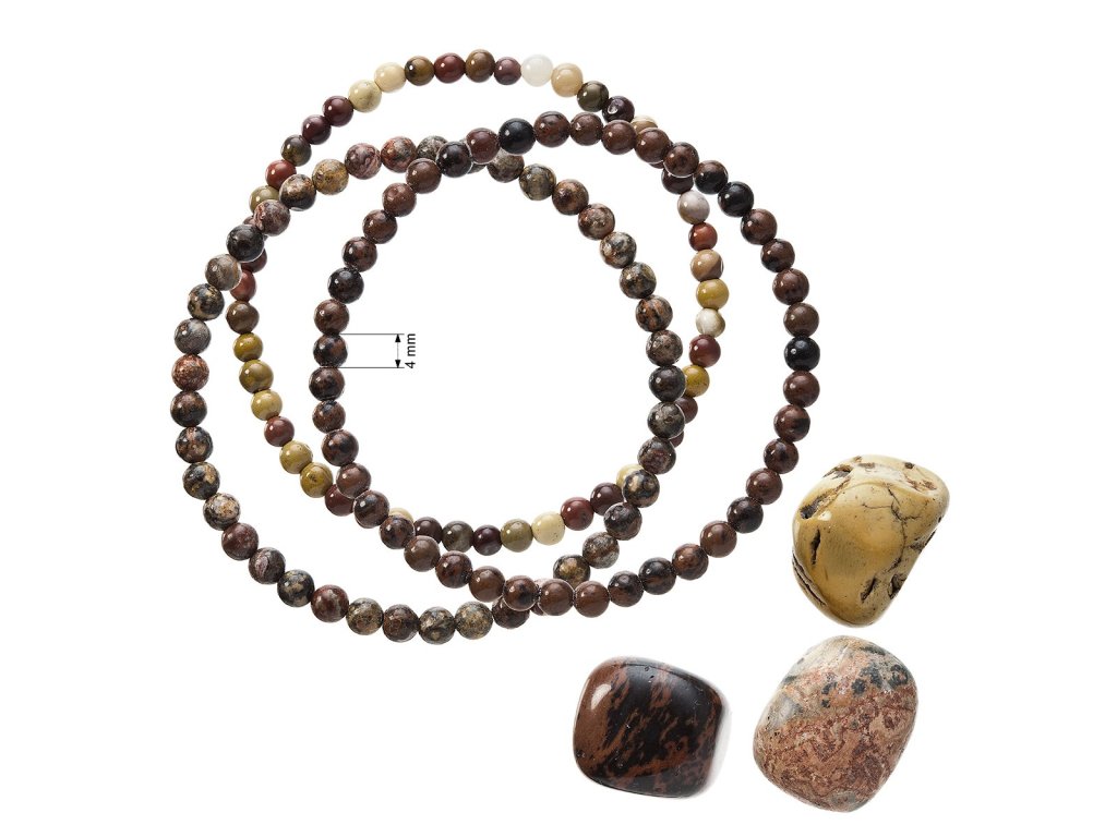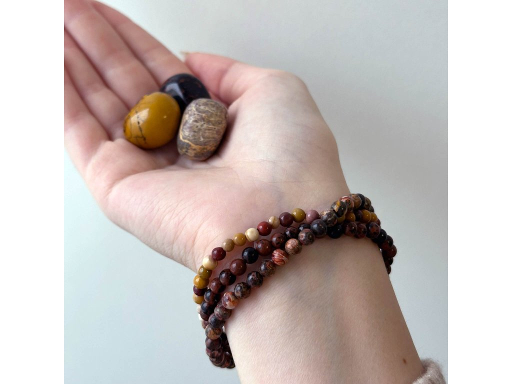 Zemité barvy s luxusními zlatavými odlesky jsou náramků z přírodních minerálních kamenů. Navíc blahodárně působí na duševní a fyzickou rovnováhu. Každý, ze tří náramků, je vyroben z kamenů, které mají různé vlastnosti a energie. Popis každého druhu si můžete přečíst níže. Tento jemný náramek se skládá z kulatých kamínků, které se krásně barevně i energicky doplňují. Kamínky jsou navlečené na elastickém vláknu, což je vhodné pro různé velikosti zápěstí. Náramky jsou skvělým dárkem pro každého, kdo má rád přírodní krásu a zajímá se o alternativní způsoby péče o duševní a fyzickou pohodu.