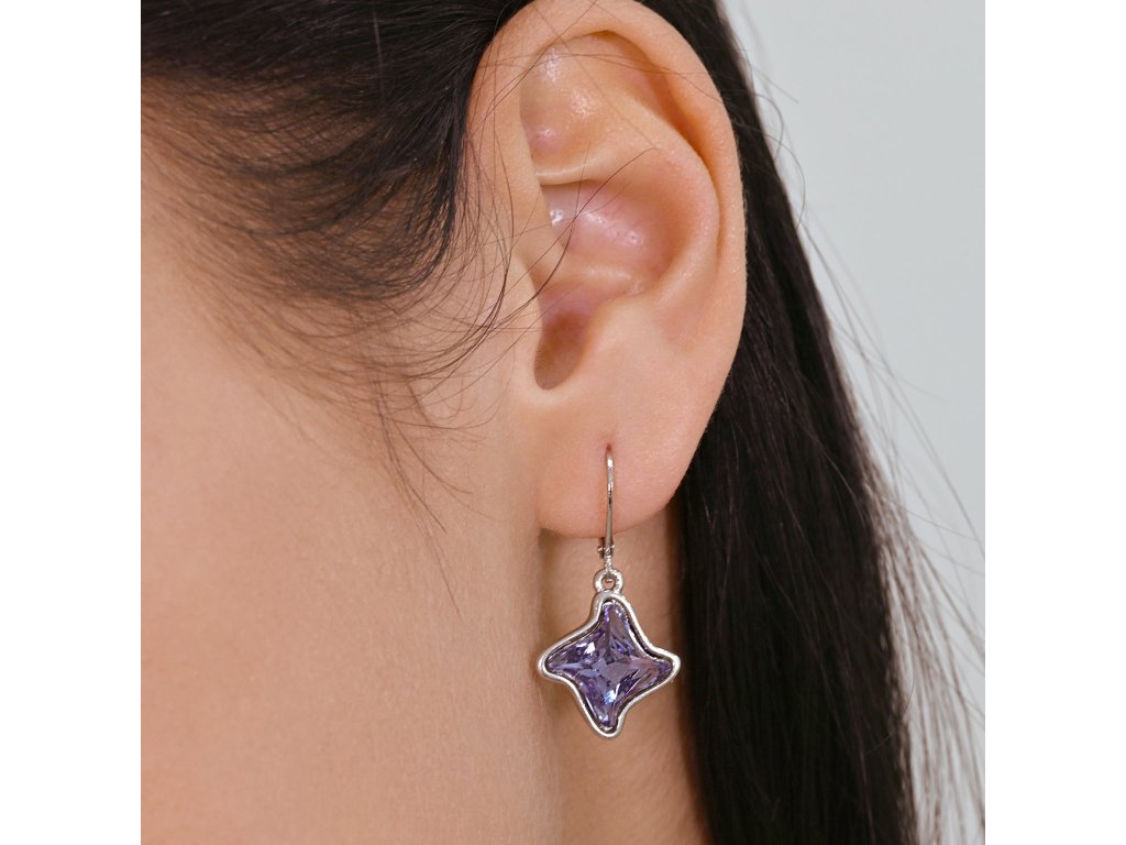 Náušnice jako dva větrníky roztočené ve větru.Náušnice mají délku 34 mm a zapínají se na klapku. Šperk je zdoben hvězdičkovým Swarovski krystalem v modré tanzanit barvě.