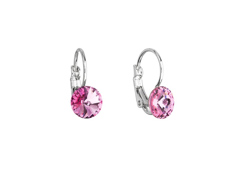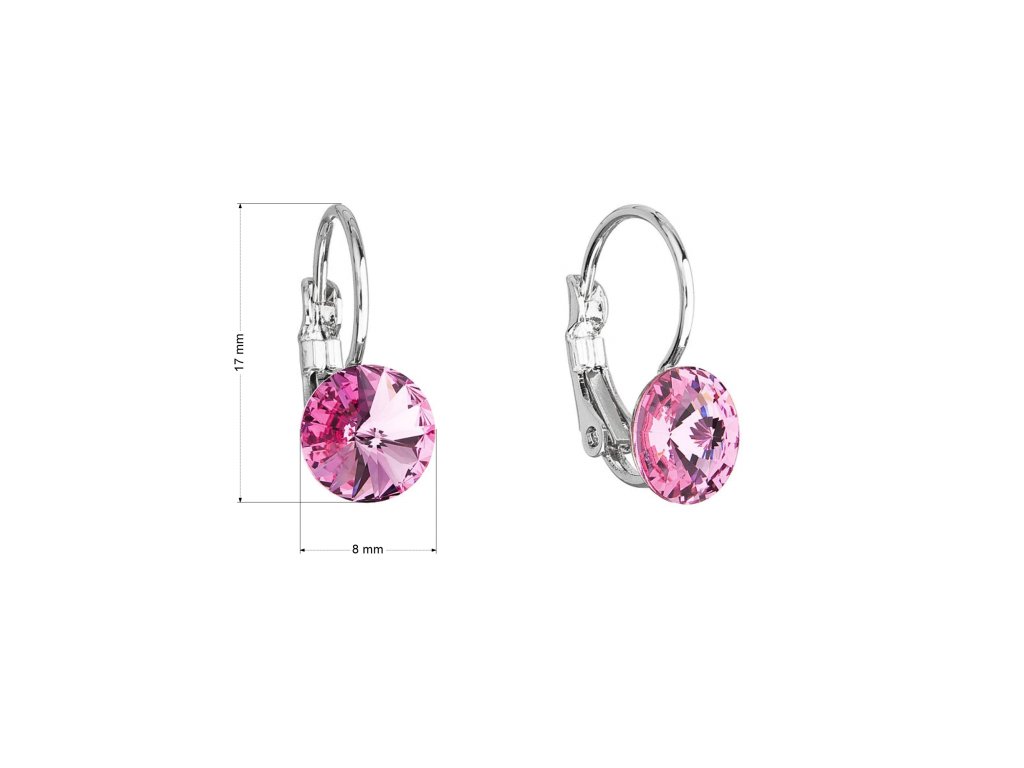 Náušnice mají délku 17 mm a zapínají se na klapku. Šperk je zdoben kulatým 8 mm širokým Swarovski krystalem v jemné růžové barvě.