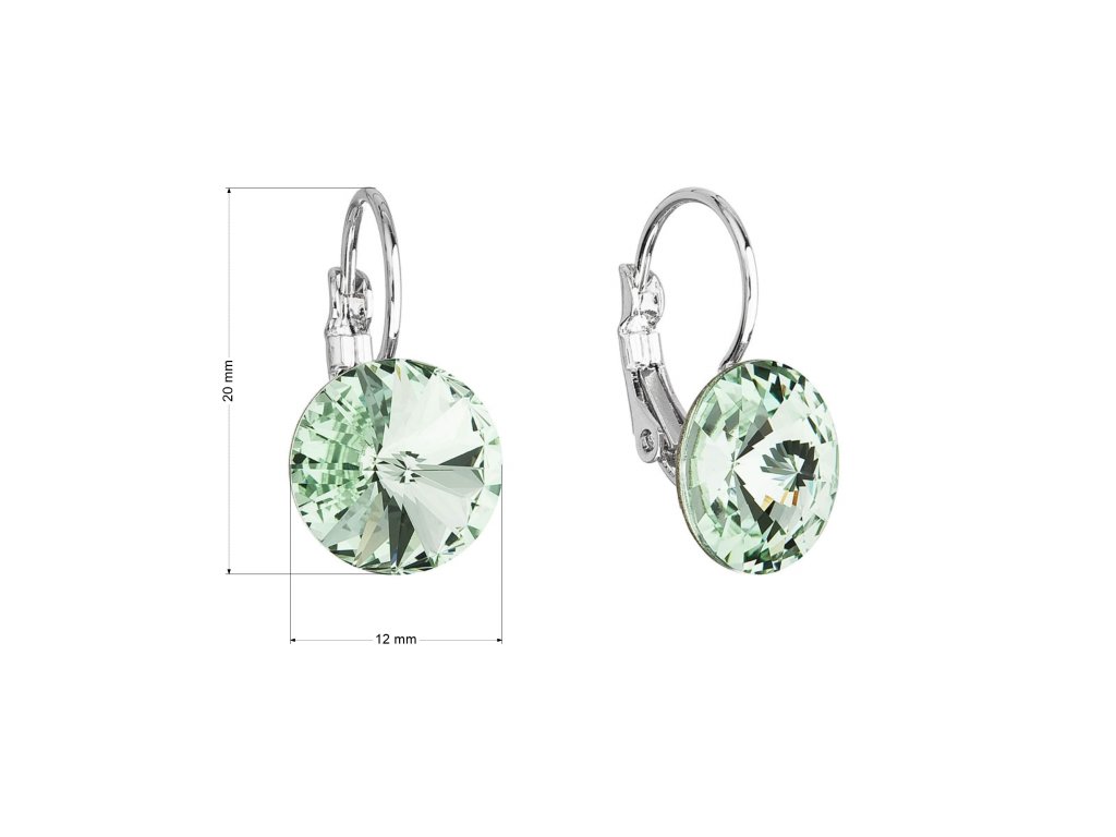 Bižuterní náušnice 51002.3 mají délku 20 mm a zapínají se na klapku. Šperk je zdoben kulatým 12 mm širokým Swarovski krystalem v zelené barvě.
