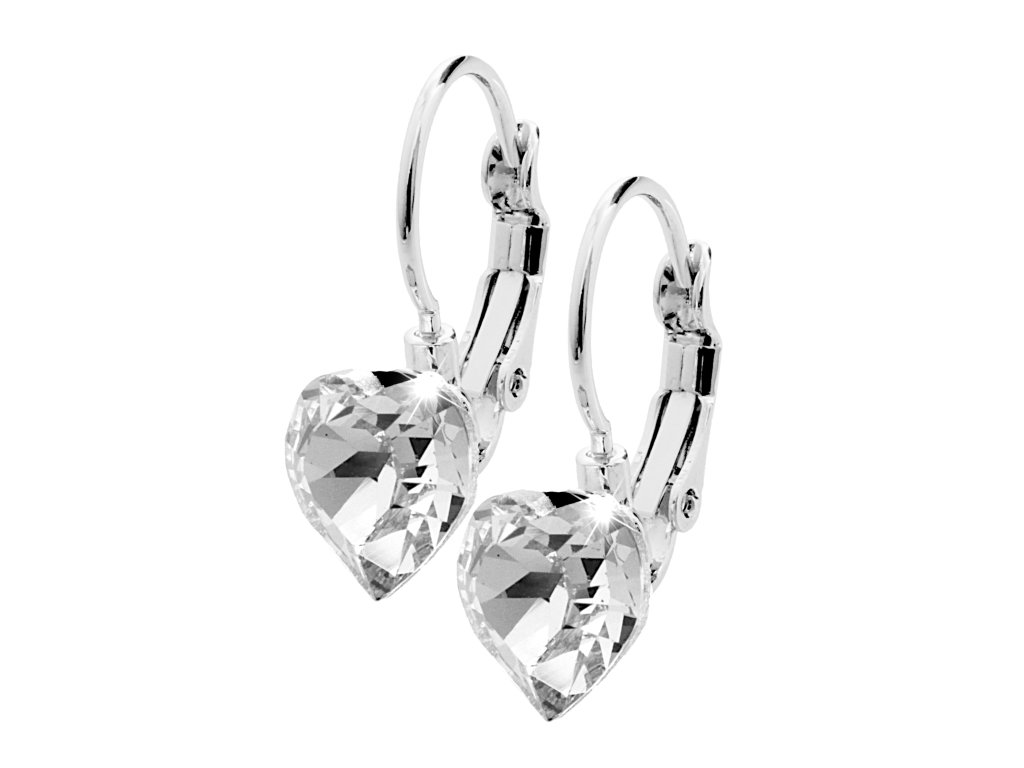 Náušnice klapky z bižuterní slitiny s malým krystalem tvaru srdce Swarovski Crystal