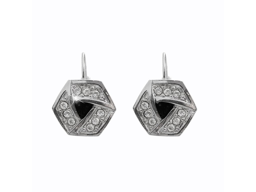 Náušnice klapky z bižuterní slitiny smaltovaný šestiúhelník s krystaly Swarovski Jet