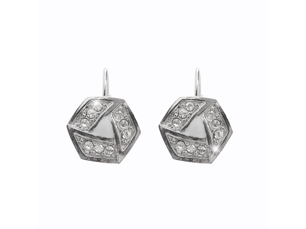 Náušnice klapky z bižuterní slitiny smaltovaný šestiúhelník s krystaly Swarovski White