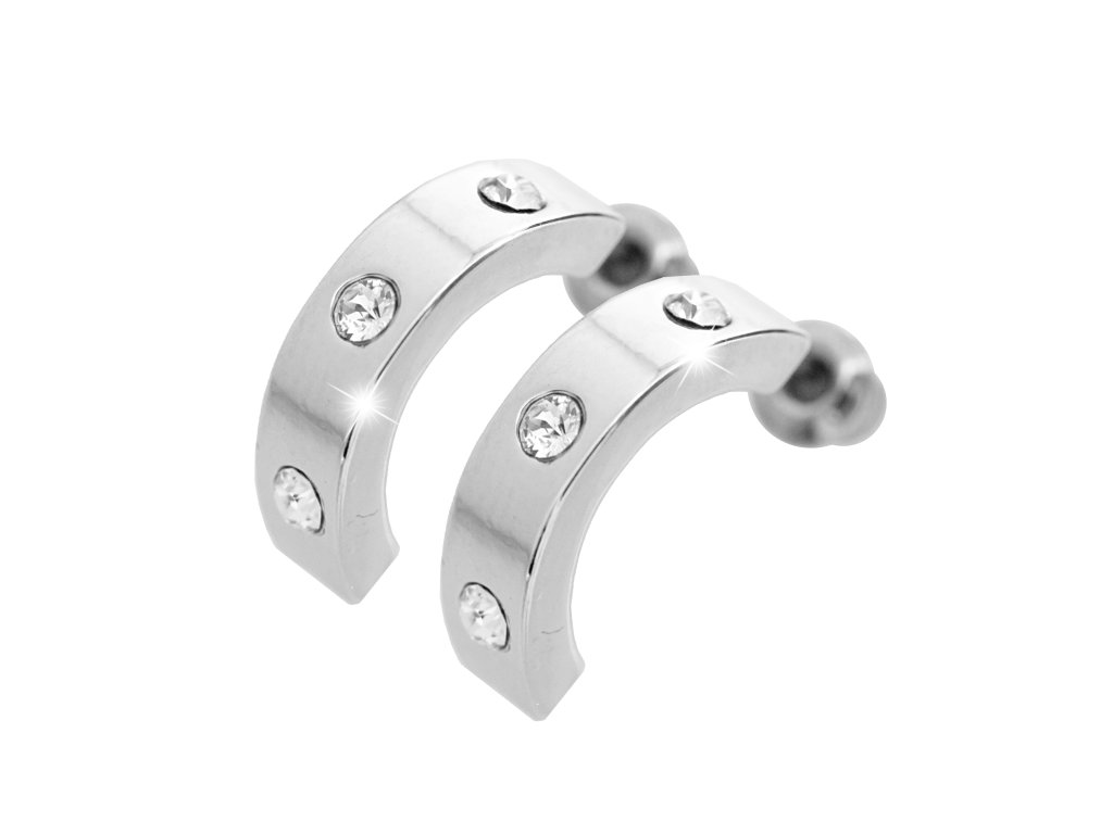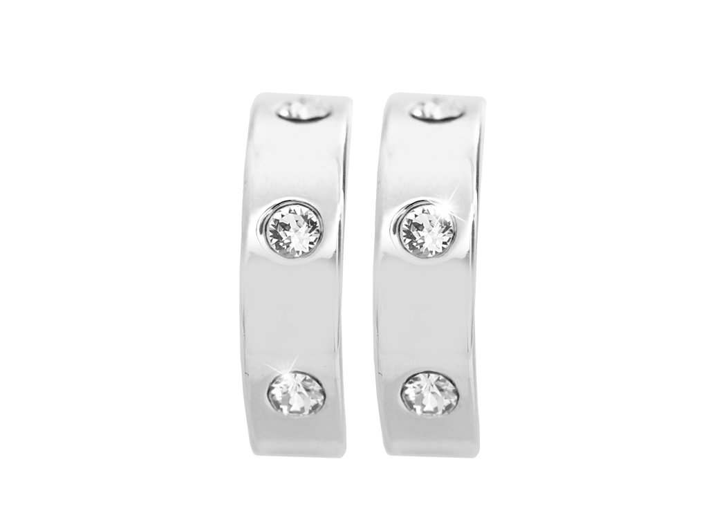 Náušnice kreole z bižuterní slitiny a tři krystaly Swarovski v rozestupech Crystal