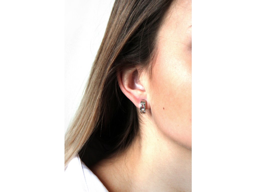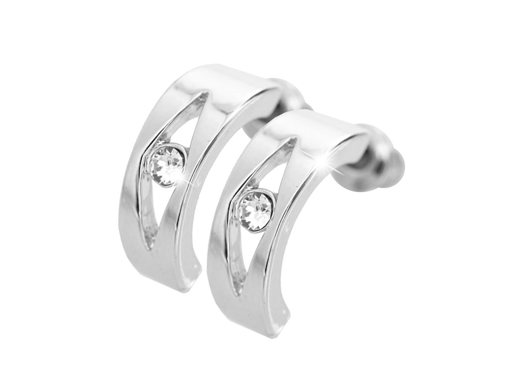 Náušnice kreole z bižuterní slitiny s kosočtvercovým výřezem a s krystalem Swarovski Crystal