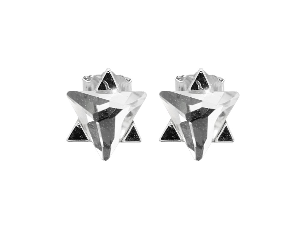 Náušnice puzety z bižuterní slitiny dva trojúhelníky ve tvaru hvězdy s krystalem Swarovski Crystal