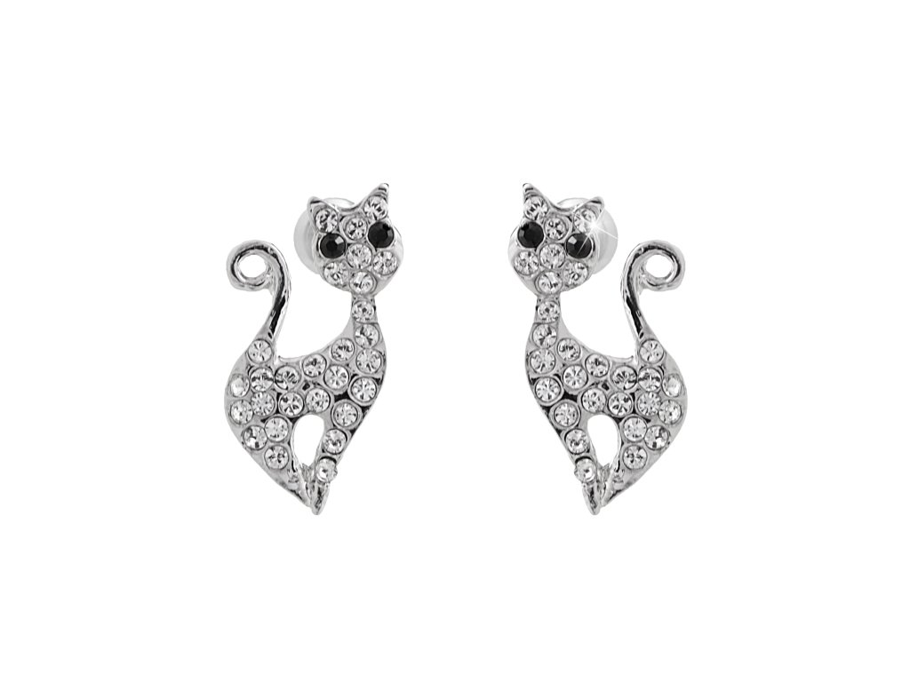 Náušnice puzety z bižuterní slitiny elegantní kočka s krystaly Swarovski Crystal