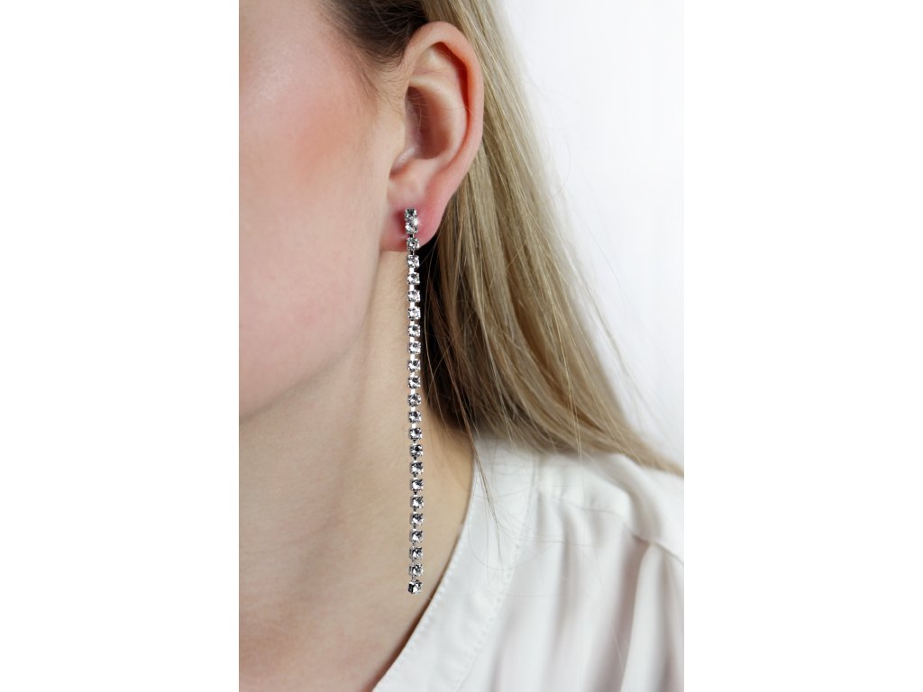 Náušnice puzety z bižuterní slitiny jeden dlouhý štrasový řetízek s krystaly Swarovski Crystal