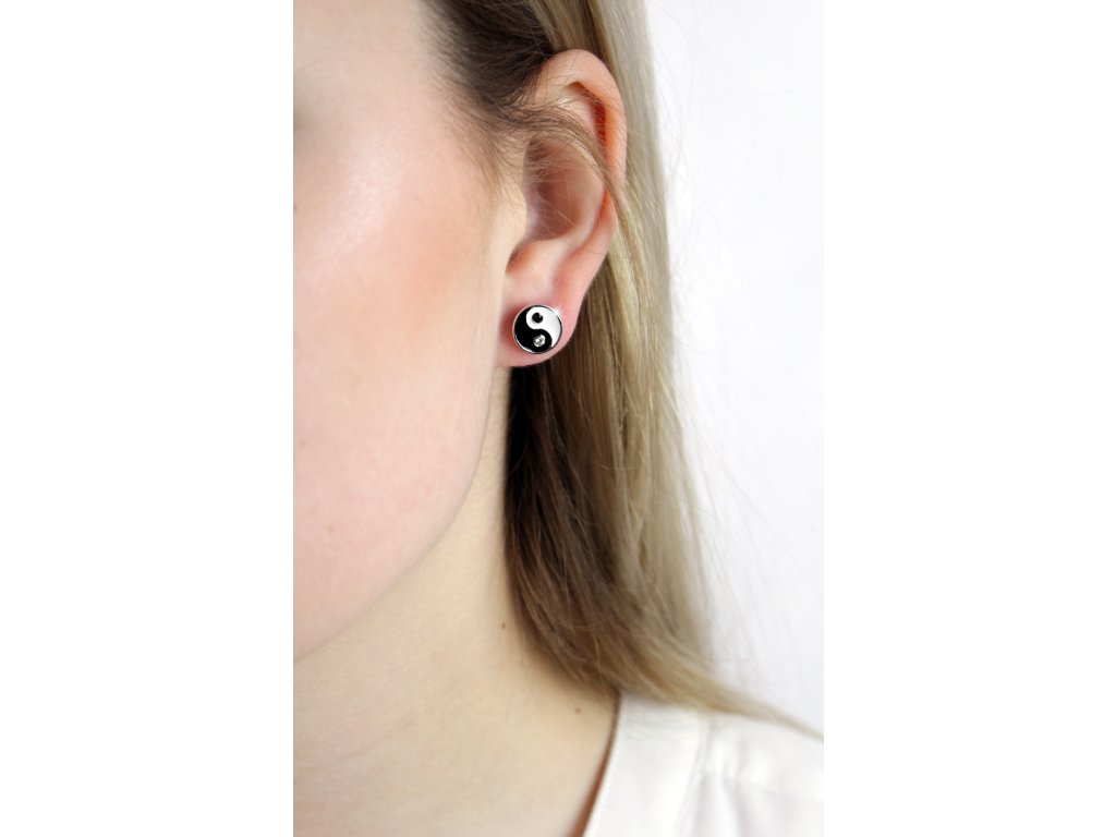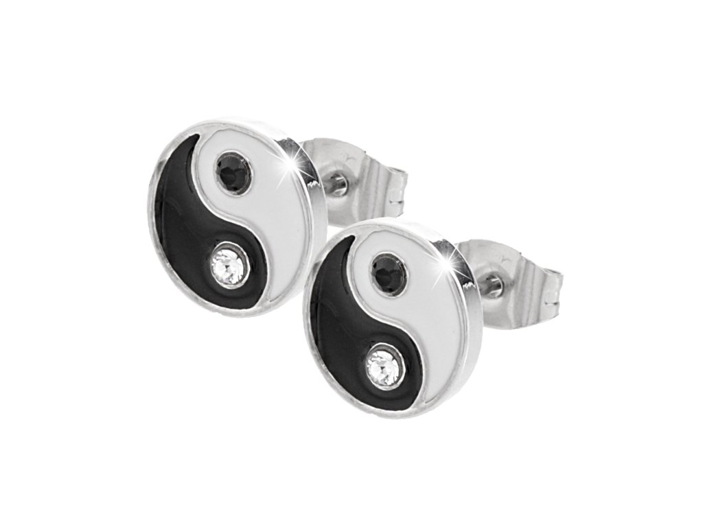 Náušnice puzety z bižuterní slitiny jin jang ozdobené krystaly Swarovski Crystal