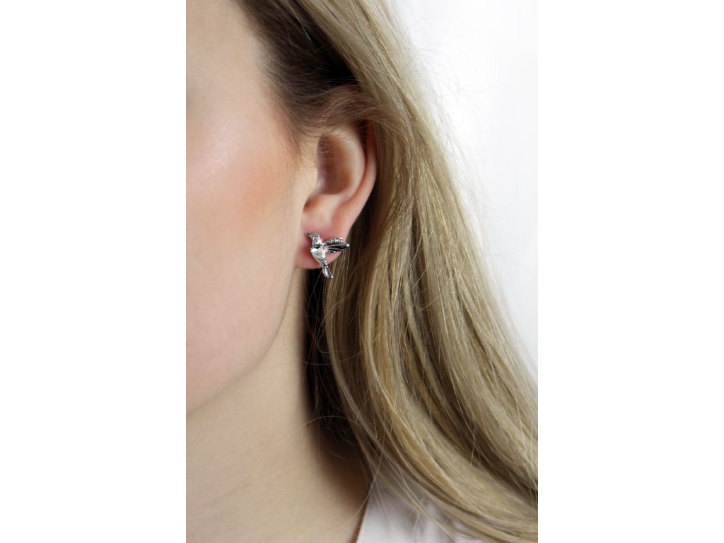 Náušnice puzety z bižuterní slitiny kolibřík s krystaly Swarovski Crystal