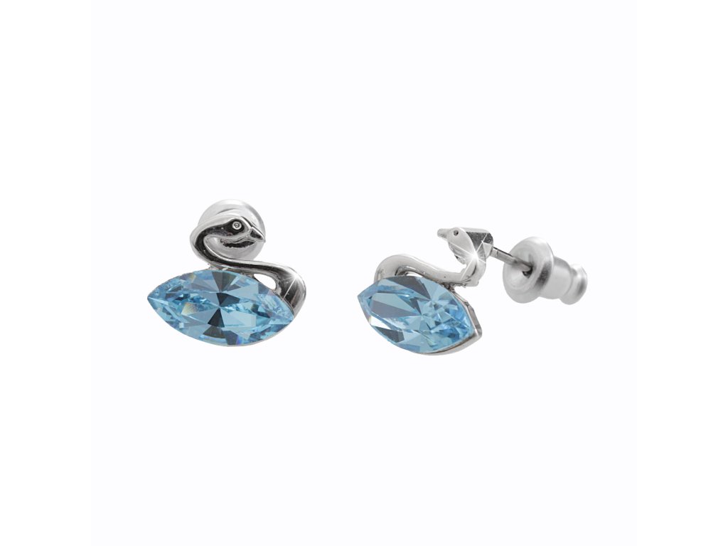 Náušnice puzety z bižuterní slitiny labuť s navetou Swarovski Aquamarine