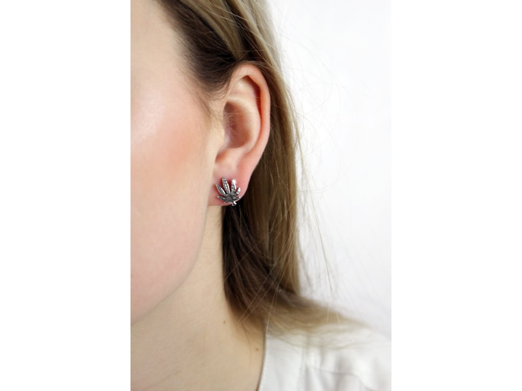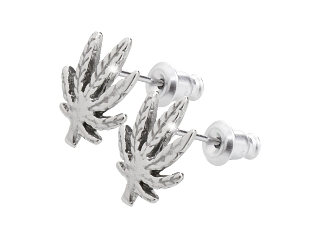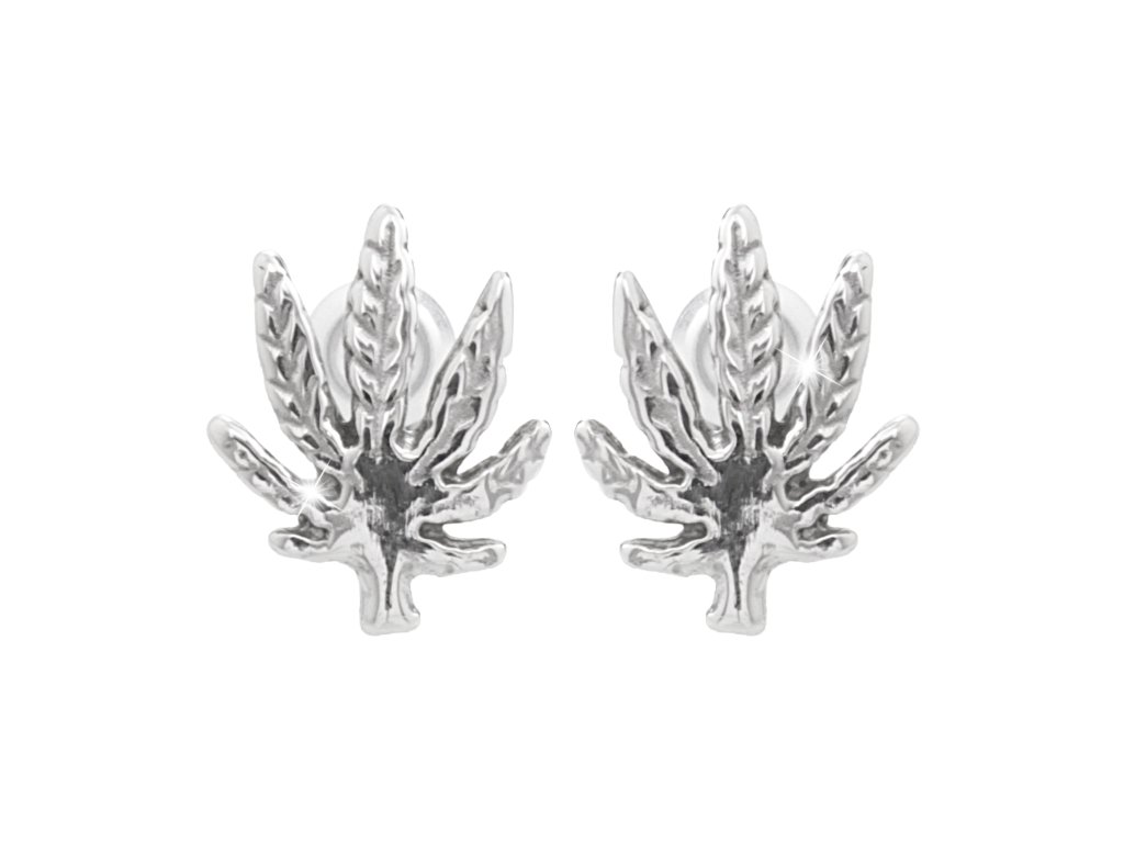Náušnice puzety z bižuterní slitiny list marihuany bez krystalů
