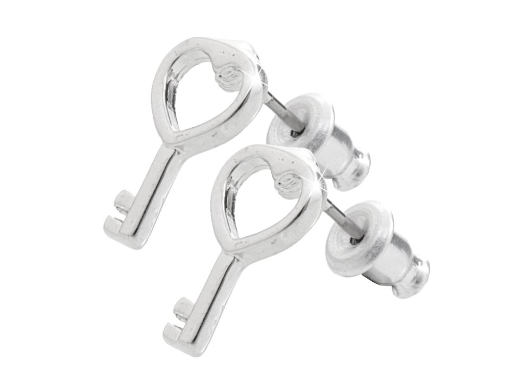 Náušnice puzety z bižuterní slitiny malý klíč bez krystalů