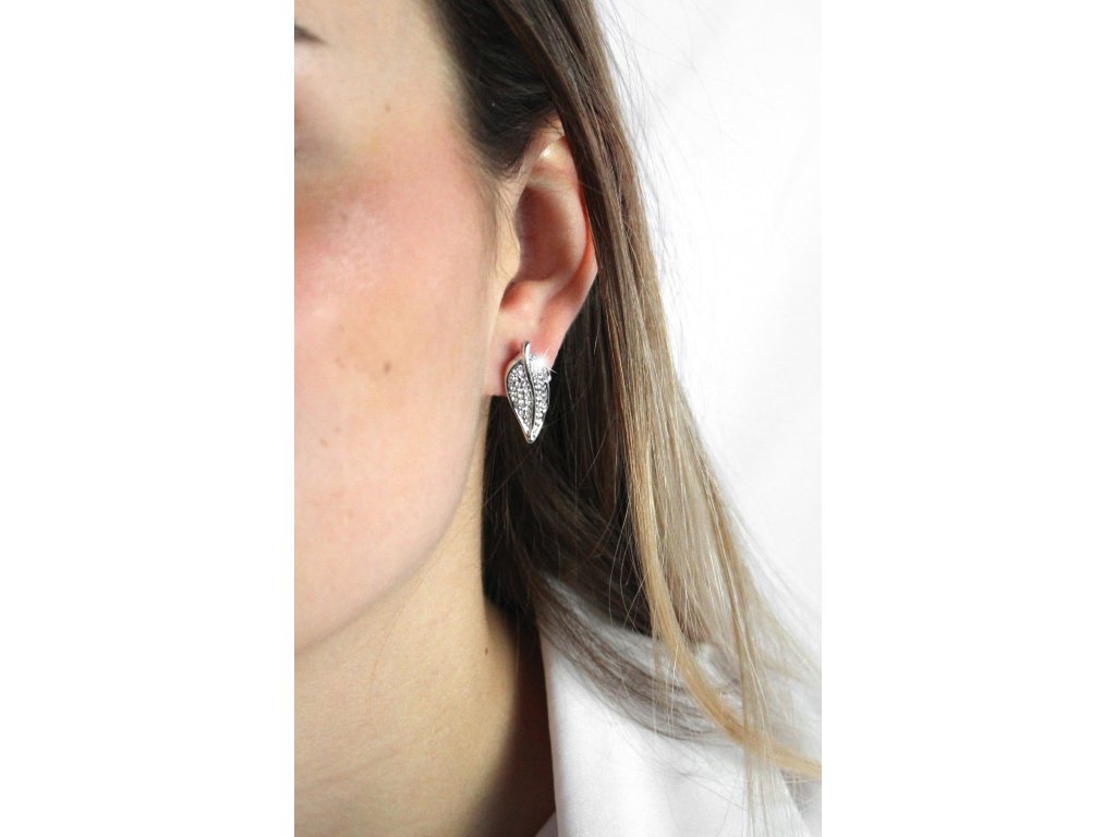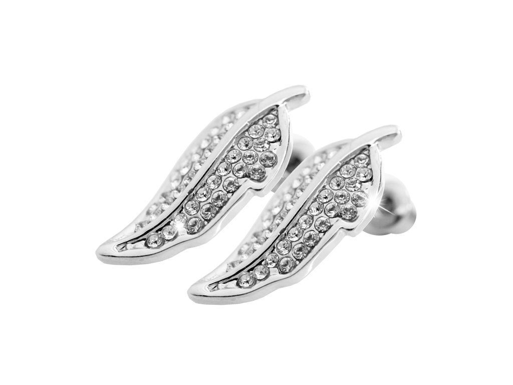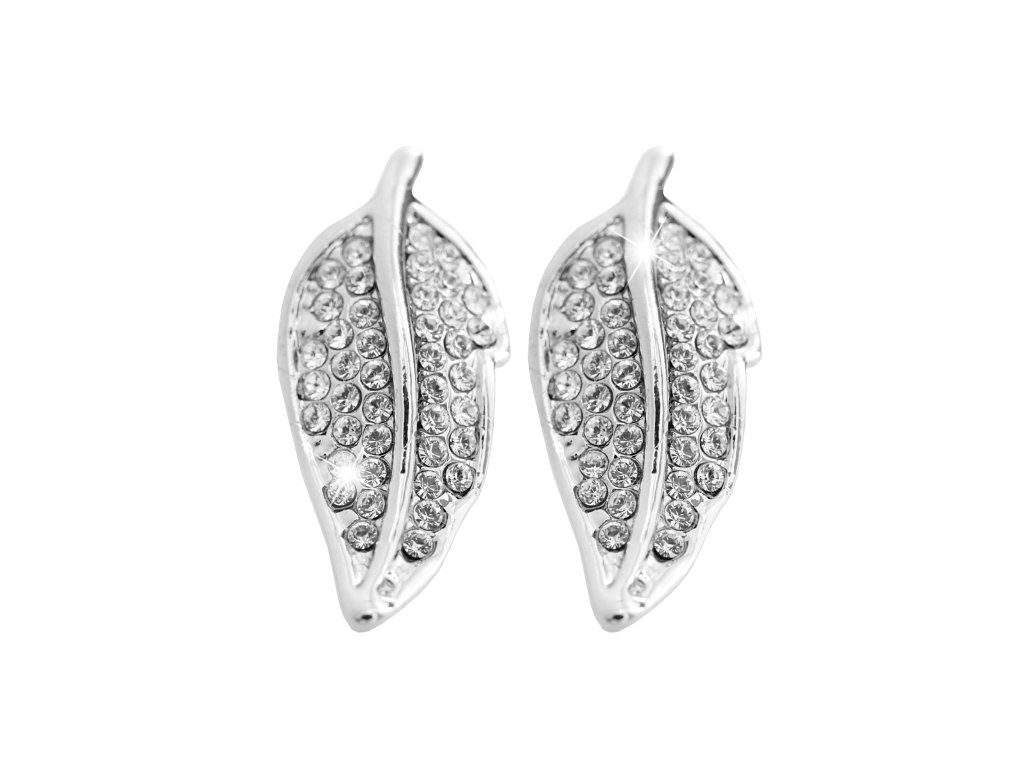 Náušnice puzety z bižuterní slitiny peříčko hustě osázené krystaly Swarovski Crystal