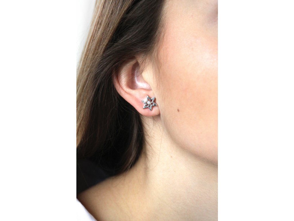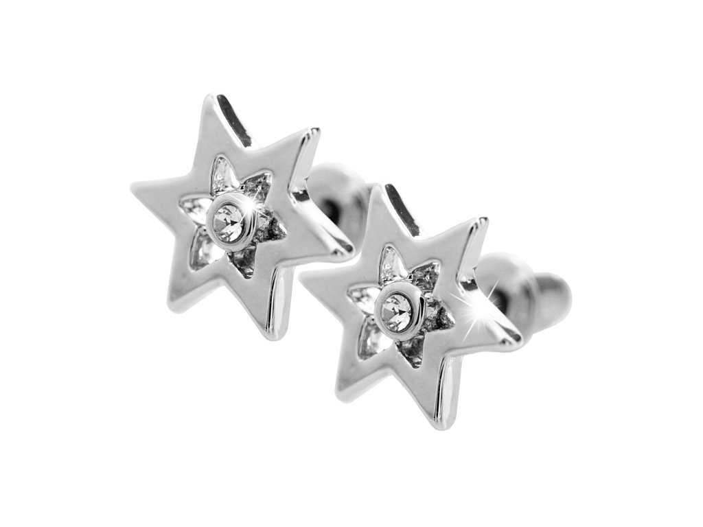 Náušnice puzety z bižuterní slitiny šesticípá prořezávaná hvězda s krystalem Swarovski Crystal