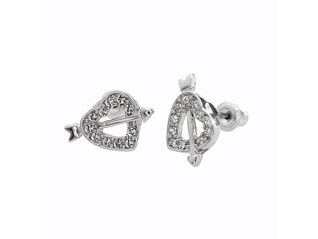 Náušnice puzety z bižuterní slitiny srdce s šípem zdobené krystaly Swarovski Crystal