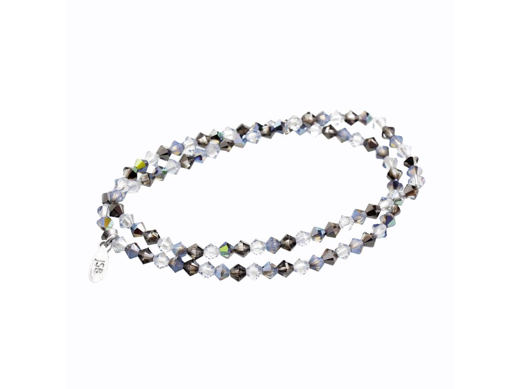 Navlékaný náramek na dvě omotání z korálků Swarovski Black Diamond