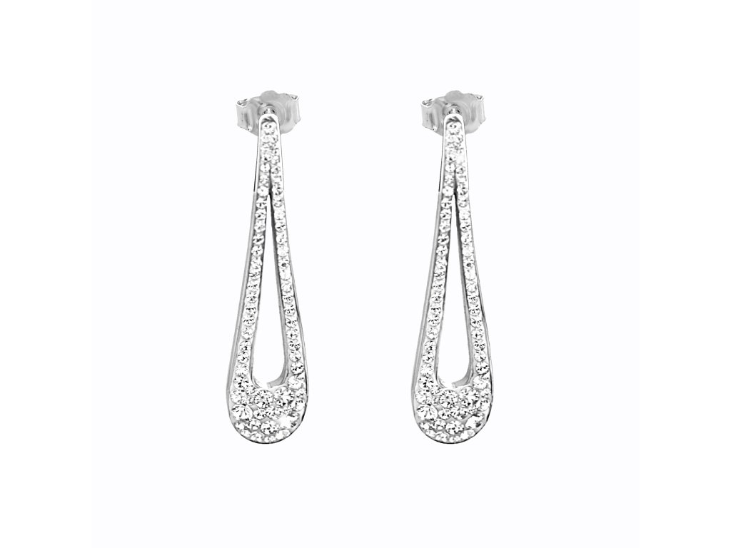 Ocelové náušnice dlouhé puzety ve tvaru kapky osázené krystaly Swarovski Crystal