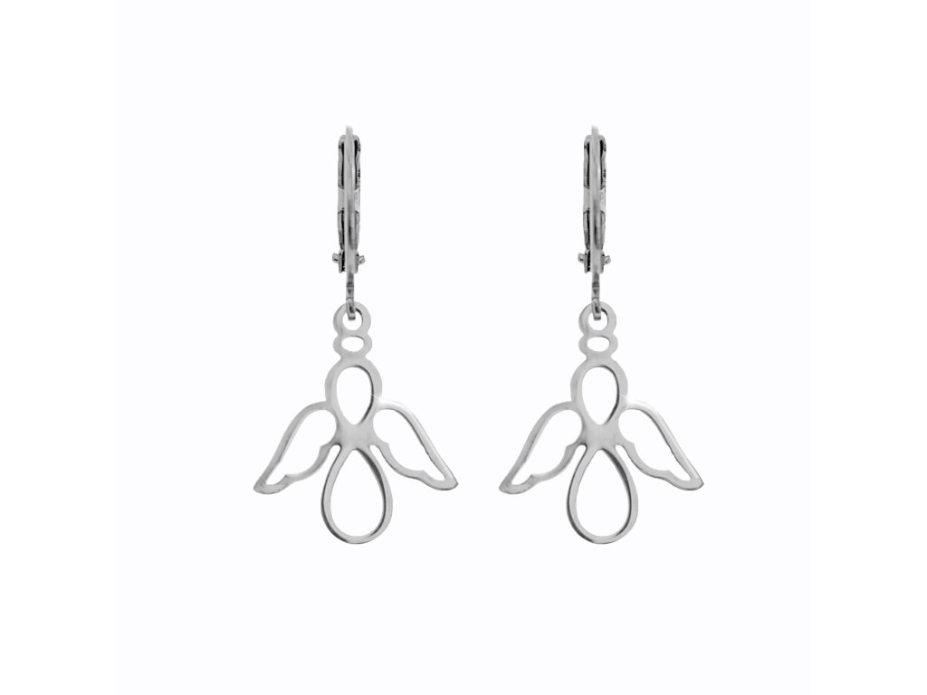 Ocelové náušnice klapky obrysový anděl bez krystalů