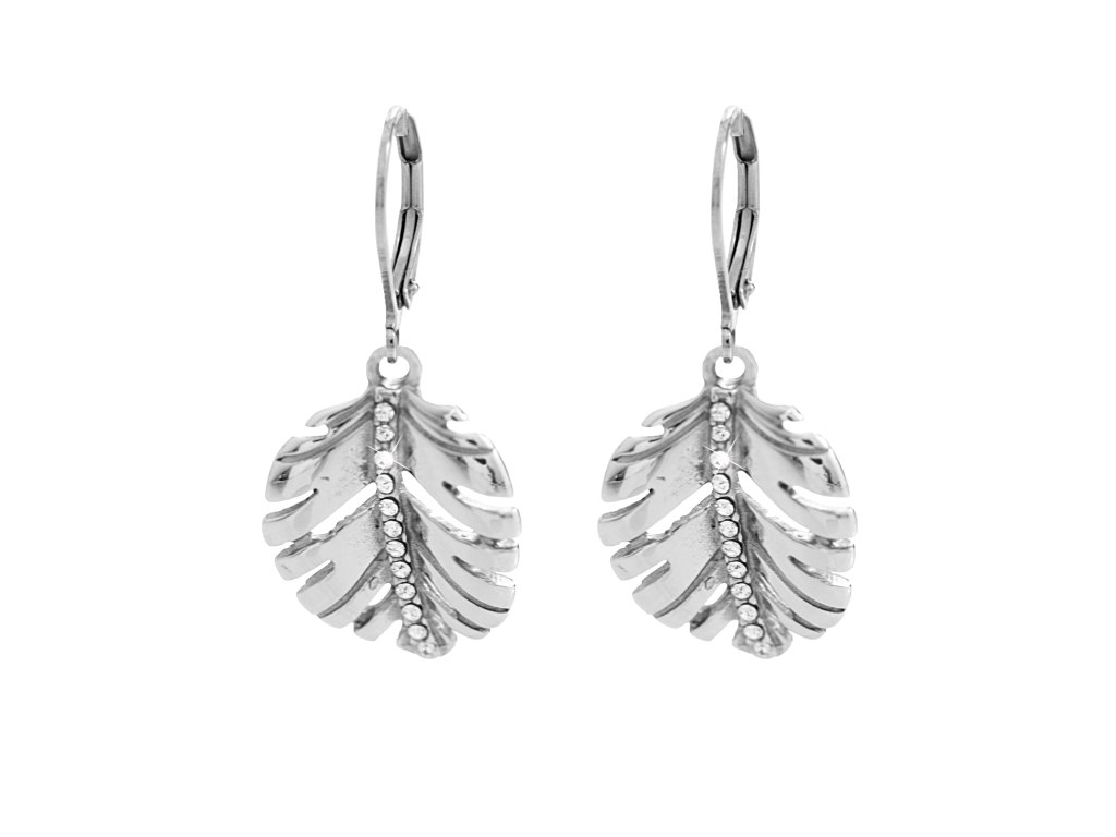 Ocelové náušnice klapky palmový list s krystaly Swarovski Crysrtal