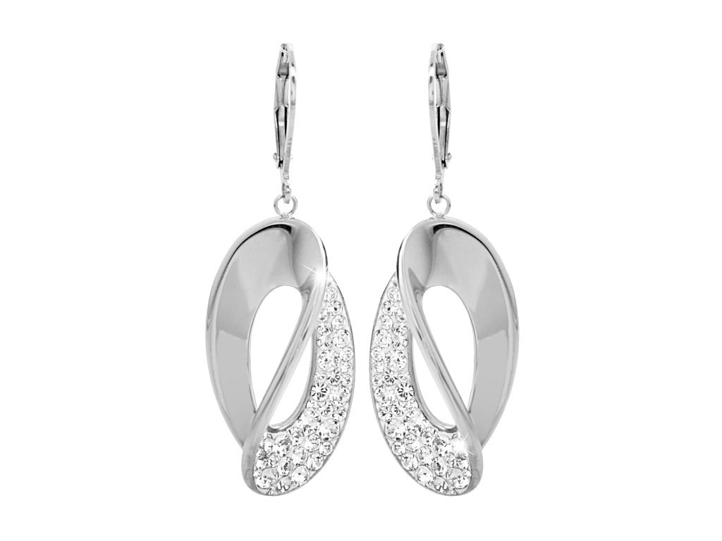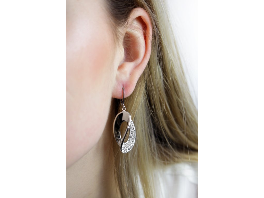 Ocelové náušnice klapky překroucený ovál s krystaly Swarovski Crystal