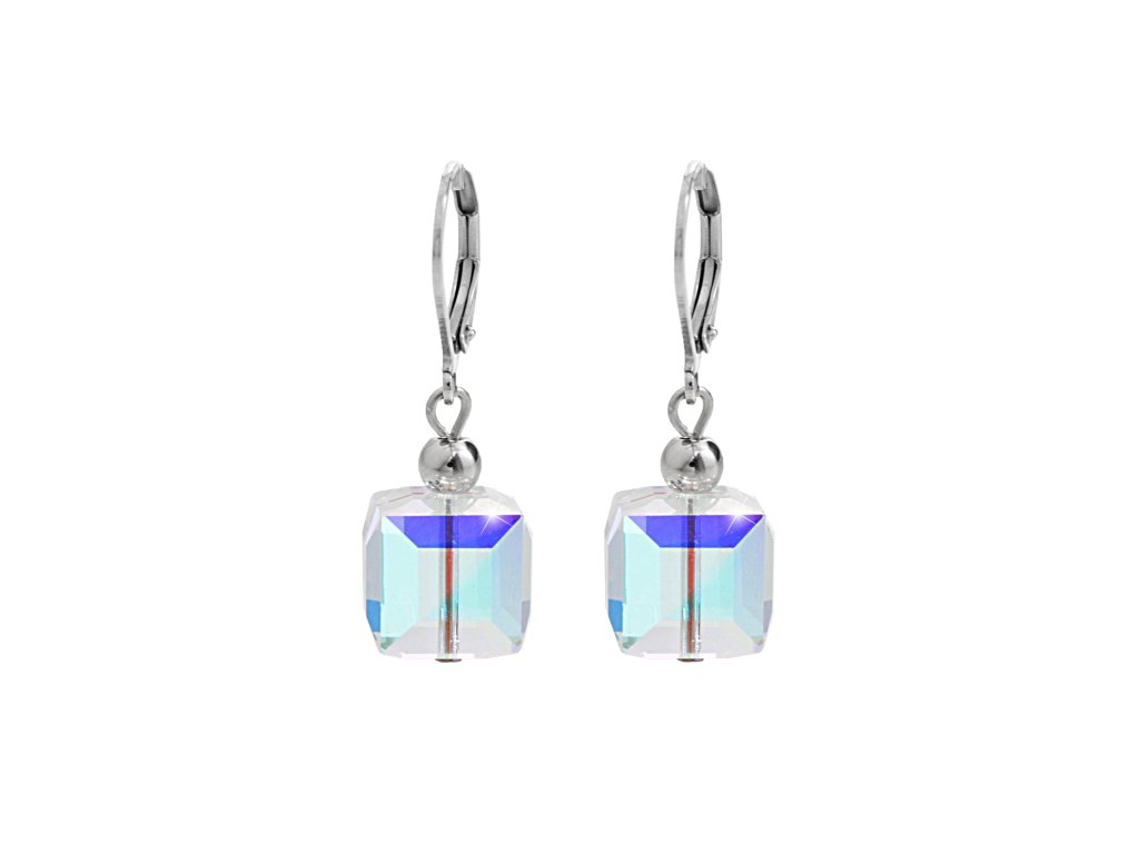 Ocelové náušnice klapky s kovovou kuličkou a kostičkou Swarovski AB
