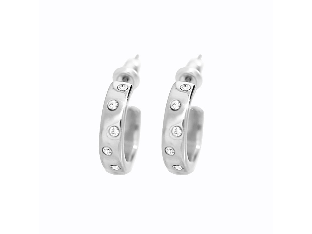 Ocelové náušnice kreole s krystaly Swarovski v rozestupech cik cak Crystal