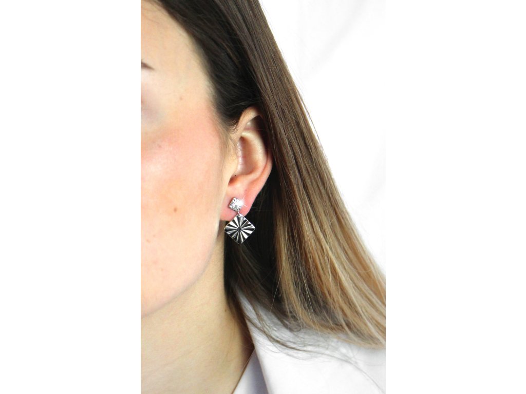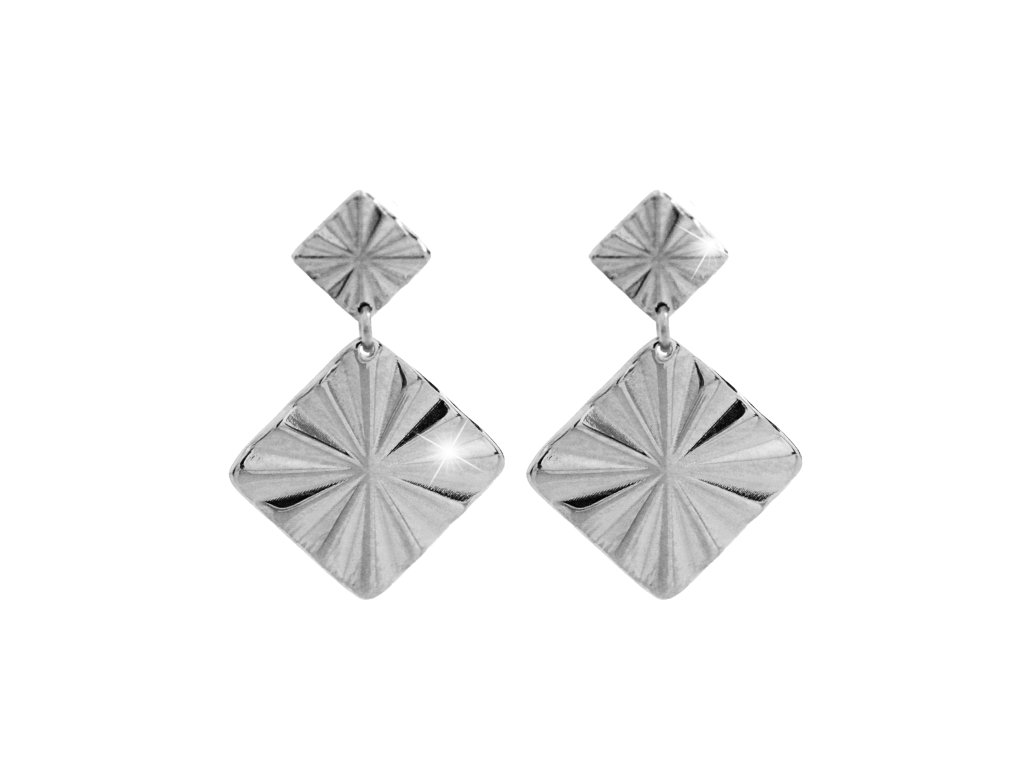 Ocelové náušnice puzety dva čtverce na koso bez krystalů
