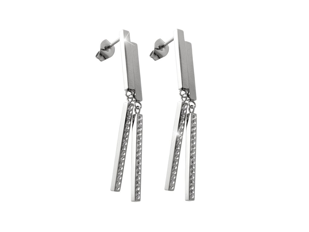 Ocelové náušnice puzety dva pohyblivé pruhy s krystaly Swarovski Crystal