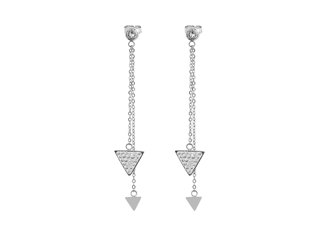 Ocelové náušnice puzety dva trojúhelníky na řetízku s krystaly Swarovski Crystal