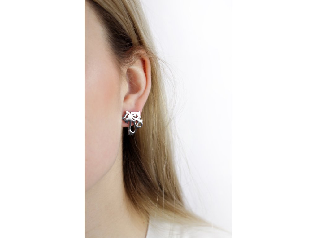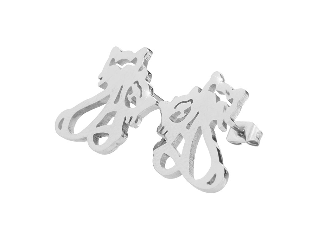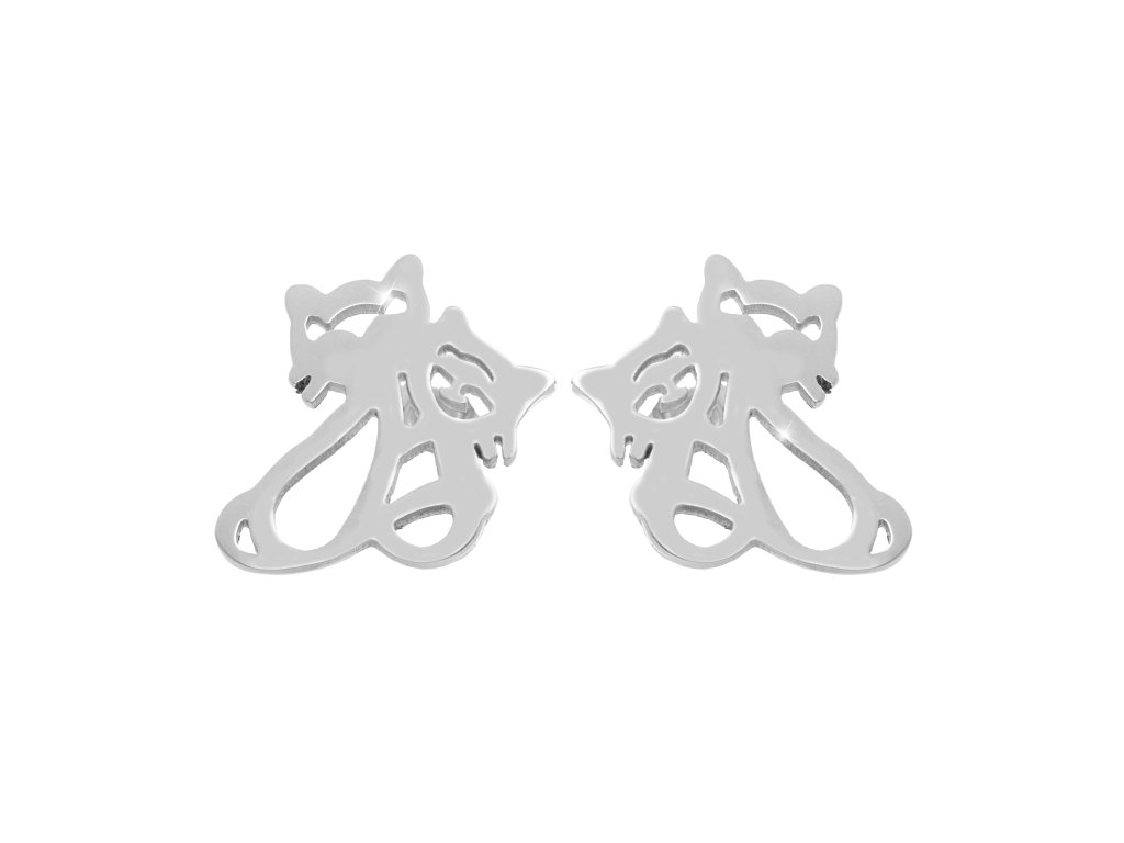 Ocelové náušnice puzety dvě prořezávané kočky bez krystalů